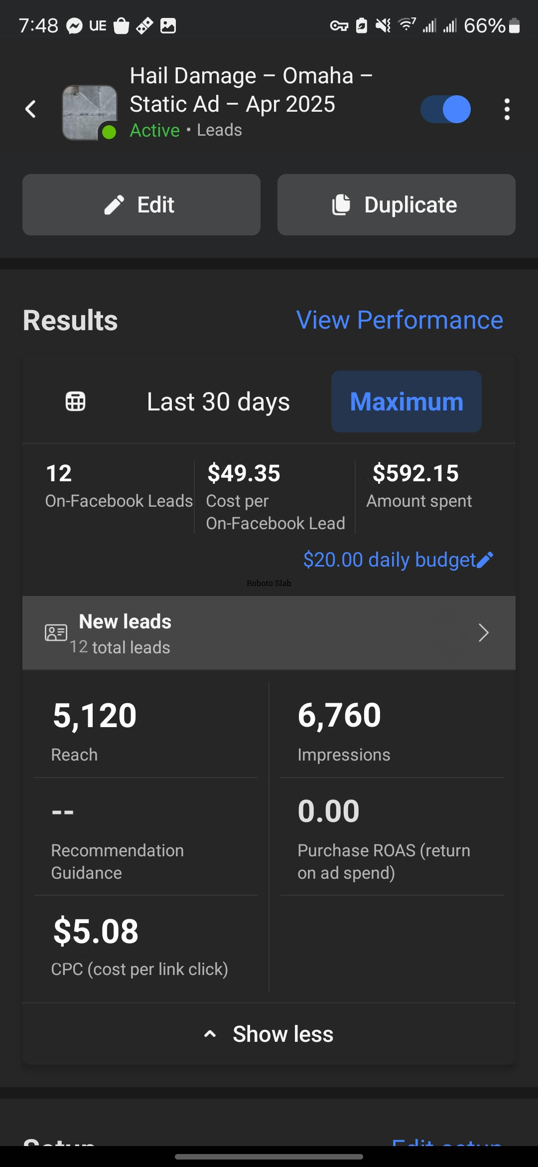 Day 30: Grand Total of 12 exclusive leads converted into 10 qualified and scheduled appointments — all for a total ad spend of $592.15.