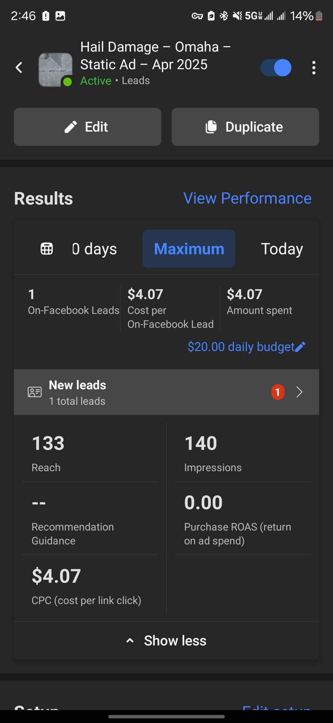 Day 1: First lead in less than 24 hours — $4.07 spent.